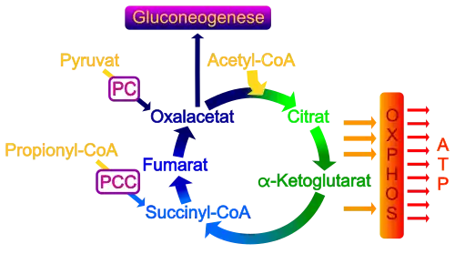 - Pyruvat-Carboxylase (Bereitstellung von Oxalacetat für Citratzyklus und Gluconeogenese)