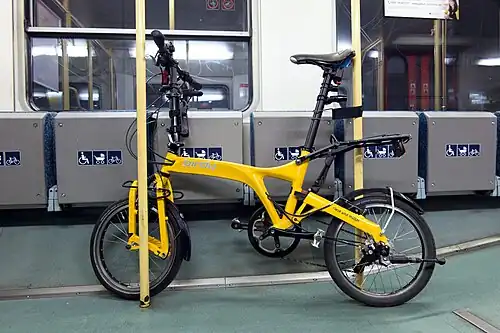 Die Laufräder besitzen zwar die üblichen Einbauweiten von vorn 100 und hinten 135 mm, allerdings wird die seltene Felgengröße von »18 Zoll« verwendet. Die Reifen sind damit kaum größer als bei gewöhnlichen »16-Zoll«-Rädern (der Durchmesser der Felgenschulter beträgt 355 gegenüber 349 mm etwa bei Brompton). 18-Zoll-Reifen sind eine Sondergröße, die meist nur auf Bestellung erhältlich ist.