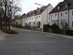 Der Architekt Hans Reissinger entwarf den Bebauungsplan, der im August 1935 genehmigt wurde. Ab 1936 entstanden, in einem ersten Bauabschnitt, die Häuser im Bereich Birkenstraße (Westseite), Hegelstraße (Nordseite) und Helmholtzstraße. Südlich der Hegelstraße, bis über die Jakob-Grimm-Straße hinaus, wurde im folgenden Jahr gebaut, mit dem Bau der Häuser an den Südabschnitten der Kantstraße (Nr. 31 bis 65) und der Heinrich-von-Kleist-Straße (Nr. 11 bis 42) wurde 1938 begonnen. Die südlich der Hegelstraße errichteten Doppelhaushälften und Reihenhäuser sind zweigeschossige Gebäude mit Satteldach und beidseitigen Gauben auf einer Grundfläche von ca. 75 Quadratmetern, lediglich vier Doppelhaushälften weisen eine Grundfläche von etwa 100 Quadratmetern auf. Die freistehenden Häuser Birkenstraße 66 und 76 sowie Heinrich-von-Kleist-Straße 37 haben Grundflächen von je 140 Quadratmetern. Nach dem Zweiten Weltkrieg wurden an die Doppelhäuser häufig Garagen angebaut.[11]
