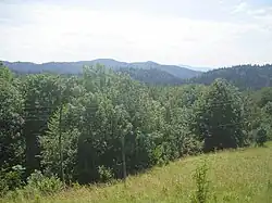 ![]() Blick vom Bergzug des Nanos auf den Birnbaumer Wald | |