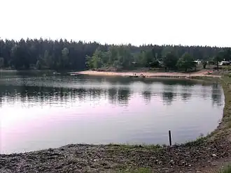 Zwischen der Wüstung Birnbaum und dem Teich liegt bis an sein Ufer reichend der Ferienpark Birnbaumteich mit Campingplatz und Badeplatz.