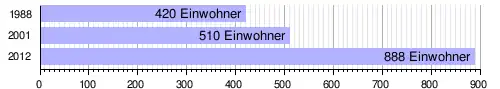 Im Hauptort lebten bei der Volkszählung 2012 888 Einwohner in 138 Haushalten,[1] bei der Volkszählung 2001 510 in 72[7] und bei der Volkszählung 1988 420 in 71 Haushalten.[8]