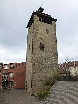 Der 38 m hohe Bergfried wurde 1986/87 im Zuge der Baumaßnahmen des Bürgerzentrums saniert, mit einer neuen Haube versehen und über eine angebaute Außentreppe als Aussichtsturm begehbar gemacht.[3]