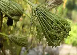 Die dicht nestartig zusammengezogene Fruchtdolde erinnert an die Fruchtdolde der Wilden Möhre (Daucus carota). Sie breitet sich durch Anfeuchten wieder aus (Hygrochasie) und schließt sich wieder bei Trockenheit. Das ist bei der Wilden Möhre gerade umgekehrt (Xerochasie).[6]