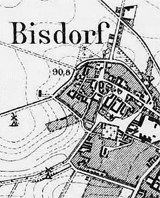 - ↑ Im Visitationsprotokoll vom April 1562 wird es als Bisdorff aufgeführt. Vgl.: Landesarchiv Sachsen-Anhalt, Abteilung Magdeburg, A 12 Gen. Ältere Konsistorialbehörden im späteren Regierungsbezirk Magdeburg (Kultusarchiv). Generalia, Nr. LASA, A 12 Gen., Nr. 2435, S. 146–148; Online, abgerufen am 7. März 2021.