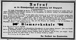 Bereits sechs Jahre vor dem Bau der Bismarcksäule beschloss die städtische Kommission zur Benennung der Straßen in Kenntnis des geplanten Bauwerks, der Verbindung von der Poststraße Richtung Großes Hillscheid den Namen Bismarckstraße zu geben.[9]