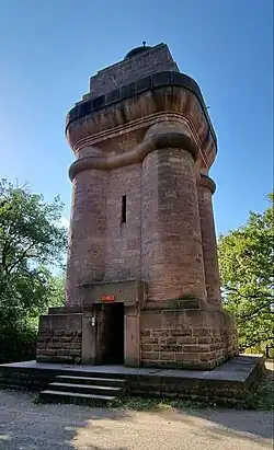 Die Bezeichnung „Bismarcksäule“ für den Turm ist auf den 1899 ausgeschriebenen Wettbewerb der Deutschen Studentenschaft zurückzuführen, der die Errichtung möglichst vieler Feuersäulen (und nicht Aussichtstürme) anregen sollte. Diesen Wettbewerb gewann Wilhelm Kreis mit seinem Modell „Götterdämmerung“; der Heidelberger Turm ist einer von 47 Türmen, die nach diesem Entwurf ausgeführt wurden. Der Turm trägt ein Reichsadlerrelief mit der Schlange der Zwietracht. An der Turmspitze ist eine gusseiserne Feuerschale angebracht, deren Durchmesser 2,5 Meter beträgt. Die Bismarcksäule wurde im Jahr 1985 saniert.