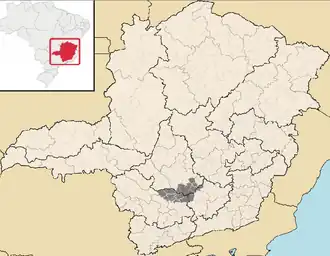 Ihr Gebiet umfasst die Gemeinden Aguanil, Bom Sucesso, Campo Belo, Cana Verde, Candeias, Carmo da Mata, Carmópolis de Minas, Cristais, Desterro de Entre Rios, Itaguara, Oliveira, Passa Tempo, Perdões, Piracema, Ribeirão Vermelho, Santana do Jacaré, Santo Antônio do Amparo, São Francisco de Paula und São Tiago.