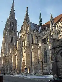 Im Hochmittelalter nahm Regensburg als Hauptstadt des bayerischen Herzogtums politisch eine bedeutende Rolle ein. Zahlreiche Reichsversammlungen fanden in Regensburg statt.[10] Im Hochstift Regensburg übte der Regensburger Bischof weltliche Rechte als Landesherr aus. Das Herrschaftsgebiet des Bischofs war allerdings relativ klein und damit auch die wirtschaftliche Macht begrenzt.[11]