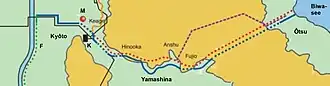 Das Kanalsystem beginnt am Biwasee in der Stadt Ōtsu am Mihogasaki. Der erste Kanal beginnt am See ab (35° 0′ 48,8″ N, 135° 51′ 35,7″ O), verläuft unter der Kannon-Halle des Mii-dera durch einen Tunnel unter dem Nagarayama, verläuft dann im Ortsteil Yamashina oberirdisch, bevor er in den Okayama-Tunnel eintritt und schließlich im Kyōtoer Stadtbezirk Sakyō (35° 0′ 56,2″ N, 135° 46′ 17,3″ O) endet, wo er den Fluss Kamo-gawa erreicht. Vom Biwasee bis zum Kamo-gawa in Kyōto beträgt die Länge der Trasse etwa 18 km.