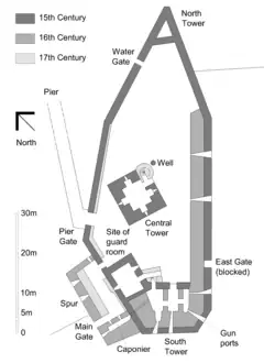 Die Burg wurde im 15. Jahrhundert, wahrscheinlich um 1440, durch den Clan Crichton erbaut, der zu dieser Zeit zu den stärksten Clans der Region zählte. Bereits im Jahre 1453 schenkte George Crichton Blackness Castle dem schottischen König Jakob II., der es als Truppenstützpunkt nutzte. Aus Furcht vor einem militärischen Konflikt mit dem englischen König Heinrich VIII. ließ Jakob V. die Burg zwischen 1537 und 1543 zu einer Festungsanlage ausbauen. Die Arbeiten leitete James Hamilton of Finnart, der eine der wehrhaftesten Festungen in Schottland erschuf.[5][6]
