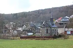 - Die unter Denkmalschutz stehende Antoniuskapelle, ein neugotischer Bruchsteinsaal aus dem Jahr 1889, ist ortsbildprägend. Weiterhin stehen zwei Fachwerkhäuser aus dem 17. oder 18. Jahrhundert sowie ein gusseiserner Laufbrunnen aus dem 19. Jahrhundert unter Denkmalschutz.