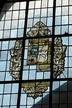 Das nicht mehr vollständig erhaltene Bleiglasfenster mit dem Wappen der Familie Blankart hatte laut Überlieferung im Jahr 1847 folgende Inschrift: