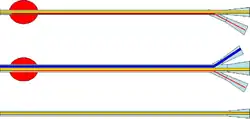 - Dieser Katheter nach Auguste Nélaton besitzt eine geschlossene Hohlspitze mit zwei gegenüberliegenden Augen bzw. vier versetzte Augen. Dieser Kathetertyp kann sowohl für weibliche als auch für männliche Patienten verwendet werden. Dieser Typ stellte wohl die häufigst angewandte Bauart sowohl für transurethrale als auch suprapubische Anwendungen dar.[9] Heute ist diese Form des Dauerkatheters durch die Verwendung von Ballonkathetern überholt.[11]