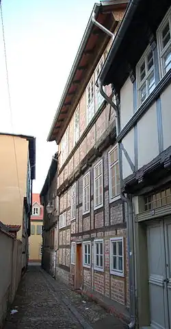 Es befindet sich auf der Ostseite einer kleinen zur Blasiistraße gehörenden Gasse, die von der Blasiistraße zur nördlich gelegenen Hohen Straße führt. Etwas weiter östlich liegt der Quedlinburger Marktplatzes. Das Gebäude gehört zum UNESCO-Weltkulturerbe und war im Quedlinburger Denkmalverzeichnis unter der Erfassungsnummer 094 45533 als Wohnhaus eingetragen. Südlich grenzt das denkmalgeschützte Haus Blasiistraße 27 an.