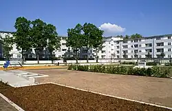 Der Innenhof wurde nach dem Bau einer Tiefgarage gänzlich neu gestaltet. Neben von Mietern bewirtschafteten Vorgärten und einem Wäscheplatz wurde ein von Bäumen umringter öffentlicher Spielplatz sowie eine Rasenfläche angelegt.
