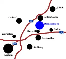- ↑ der Eschweiler Tauchclub hat eine Unterwasserkarte angefertigt, siehe [www.blausteinsee.com/tauchen www.blausteinsee.com/tauchen]