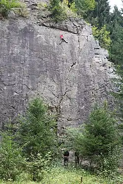 1998 errichtete der Deutsche Alpenverein einen Klettergarten in einem als Kletterfelsen ausgebauten ehemaligen Grauwackesteinbruch, der im Bocksbachtal an der Straße zum Klettergarten (bis 2015 Judenbacher Straße) liegt.