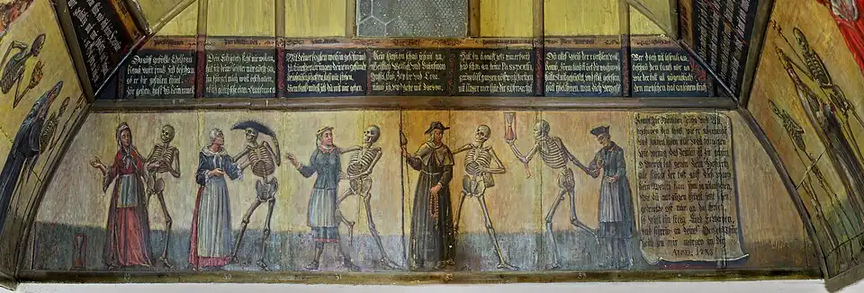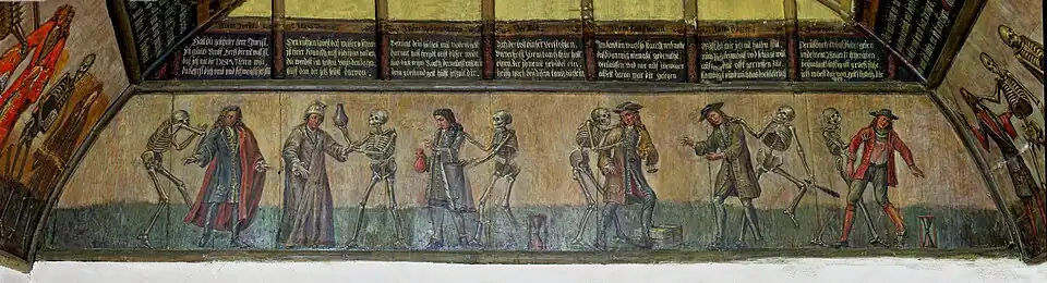 - ↑ Hans Georg Wehrens: Der Totentanz im alemannischen Sprachraum. „Muos ich doch dran – und weis nit wan“. Schnell & Steiner, Regensburg 2012, ISBN 978-3-7954-2563-0, S. 234 ff.
