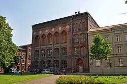 Das dreigeschossige Haus aus Backstein wurde im Jahr 1875 nach Entwürfen von Ernst von Haselberg im Stil der Neugotik gebaut. Es wurde am 3. August 1875 festlich eingeweiht.[1]