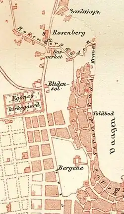 Das Haus entstand als Bauernhaus eines Bauernhofs, der den größten Teil des heutigen Gamle Stavanger umfasste. Eine erste urkundliche Erwähnung ist auf einer Karte des Stadtschreibers Ulric Frideric Aagaard von 1726 überliefert, auf der auch der Hof Blidensol dargestellt ist. Das Haus entstand vermutlich Anfang des 18. Jahrhunderts. Es gibt jedoch Vermutungen, dass der östliche, zur Øvre Strandgate ausgerichtete Bereich, noch älter ist. Das Haus umfasst eine Wohnfläche von etwa 150 m².