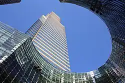 | Baustoff: | Tragwerk: Stahl (unten), Stahlbeton (oben); Fassade: Glas, Aluminium[2] |