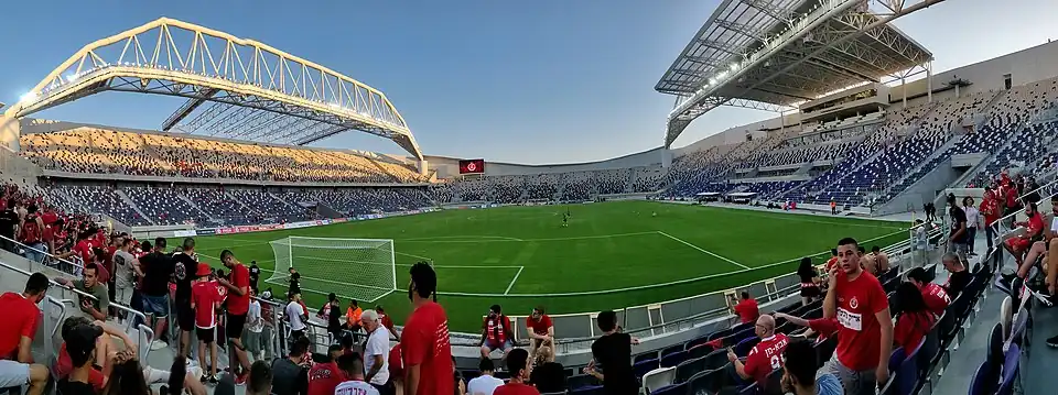 Ab Mitte 2017 wurde das Stadion auf 29.400 Plätze erweitert und die Ränge überdacht. Die Arbeiten für 275 Mio. ILS (rund 68 Mio. Euro) wurden 2019 abgeschlossen.[1] In der Umbauphase mussten die im Stadion ansässigen Mannschaften in andere Stadien ausweichen. Die Fertigstellung war für den Mai 2019 angestrebt.[2] Die Wiedereröffnung und die erste Partie fanden am 25. August 2019 zum ersten Spieltag der neuen Saison statt. Bne Jehuda Tel Aviv bezwang Hapoel Ironi Kirjat Schmona mit 2:1.[3]