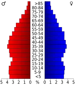 25,4 Prozent der Bevölkerung waren unter 18 Jahre alt, 8,4 Prozent zwischen 18 und 24, 29,2 Prozent zwischen 25 und 44, 24,1 Prozent zwischen 45 und 64 und 12,9 Prozent waren 65 Jahre oder älter. Das Durchschnittsalter betrug 36 Jahre. Auf 100 weibliche Personen kamen 99,7 männliche Personen und auf Frauen im Alter von 18 Jahren und darüber kamen 97,3 Männer.