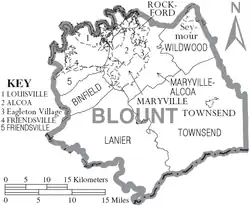 - ↑ a b U.S. Census Buero, State & County QuickFacts – Blount County, TN ( des vom 6. August 2011 im Internet Archive) Info: Der Archivlink wurde automatisch eingesetzt und noch nicht geprüft. Bitte prüfe Original- und Archivlink gemäß Anleitung und entferne dann diesen Hinweis. Abgerufen am 17. Dezember 2014.