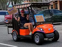 Im Juli 2020 kam es bei den Protesten infolge des Todesfalles von George Floyd zu Zusammenstößen zwischen Anhängern von Blue Lives Matter und Black Lives Matter, wobei sich einige Vertreter von Blue Lives Matter nicht als Gegner der Black-Lives-Matter-Bewegung sehen. Als Entgegnung zur Forderung, der Polizei die finanziellen Mittel zu entziehen, wurde zudem die Bewegung Back the Blue (deutsch Unterstützt die Blauen) gestartet.[8] Beim Sturm auf das Kapitol in Washington 2021 nahmen Unterstützer von Blue Lives Matter, darunter Polizisten außer Dienst teil. Die Unterstützung von Blue Lives hatte in der Präsidentschaftskandidatur Donald Trumps eine wichtige Rolle gespielt.[5] Rechtsextreme Gruppen wie die Proud Boys verwenden den Slogan Blue Lives Matter ebenfalls.[9]