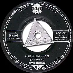 Als Perkins Single Blue Suede Shoes sich im April 1956 eine Million Mal verkauft hatte, schenkte der Inhaber von Sun Records, Sam Phillips, Perkins einen Cadillac.[4] Der Song war der erste Millionenseller von Sun Records. Ein schwerer Autounfall im Frühjahr 1956 verhinderte, dass Carl Perkins einen Nachfolgevertrag unterschreiben konnte und beendete beinahe dessen Karriere. In Deutschland erschien die Originalversion im Juni desselben Jahres auf dem Label London Records (DL 20 037), das von Teldec vertrieben wurde.
