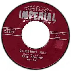 Fats Dominos Version basiert auf Armstrongs Fassung aus dem Jahre 1949.[2] Ausnahmsweise wurde nicht in New Orleans bei Cosimo Matassa aufgenommen, sondern ab dem 26. Juni 1956 in den Tonstudios von Master Recorders in Los Angeles mit den Gitarristen Justin Adams und Ernest McLean sowie dem Bassisten Billy Diamond. Produzent Dave Bartholomew wollte den Titel nicht aufnehmen, weil er bereits zu oft als Single erschienen war. Domino bestand jedoch darauf, konnte sich allerdings den gesamten Text nicht komplett einprägen. Deshalb entstand von jeder zusammenhängenden Textpassage ein Take, sodass auf dem Zusammenschnitt vieler Takes letztlich die Single Blueberry Hill / Honey Chile beruht,[3] die im September 1956 als Imperial #5407 veröffentlicht wurde. Innerhalb von zwei Wochen waren zwei Millionen Exemplare verkauft,[3] wodurch Domino bereits den vierten Millionenseller seiner Karriere vorweisen konnte.[4] Seine Uptempo-Version mit dem perfektionierten kreolischen Akzent, die er am 18. November 1956 bei seinem ersten Fernseh-Live-Auftritt in der Ed Sullivan Show präsentierte,[5] verkaufte bis 1957 weltweit fünf Millionen Exemplare und wurde sein größter Hit.