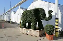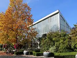 - 1 Großgewächshaus (Palmenhaus) mit drei Abteilungen. Diese sind mit Verbindungsgängen miteinander verbunden, die auch mit Lastkraftwagen befahren werden können.