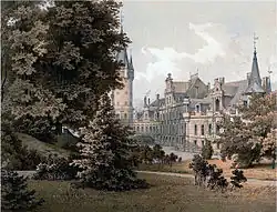 - Der Schlosspark war in mehrere Terrassen gegliedert und beherbergte zwei Kavalierhäuschen sowie eine Orangerie. 1827–1887 wurde er nach Entwurf von J. Kittel um einen Landschaftsteil erweitert und um 1860 nach Plänen des Landschaftsgärtners Eduard Petzold verändert. Heute befinden sich im Park Sportanlagen.