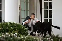 Barack Obama hatte seinen Töchtern die Anschaffung eines Hundes versprochen, wenn er zum Präsidenten gewählt würde. Dies verkündete er bei seiner ersten Pressekonferenz nach der Wahl im November 2008.[2] Als Bo im April 2009 ins Weiße Haus einzog, berichteten Medien aus der ganzen Welt über den Hund.[3] Ein Portugiesischer Wasserhund wurde gewählt, da Malia Obama an einer Hundehaarallergie leidet; Hunde dieser seltenen Rasse haaren nicht und gelten daher als hypoallergen.[4] Nach heutigen Erkenntnissen existieren hypoallergene Hunde allerdings nicht.[5][6]