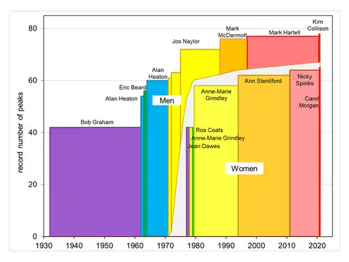 Aufbauend auf der Bob Graham Round erhöhten zu späteren Zeitpunkten verschiedene Läufer die Anzahl der Gipfel, die innerhalb von 24 Stunden überquert wurden: