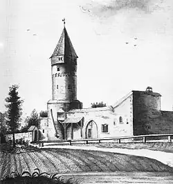 ![]() Die Bockenheimer Warte mit Wartturm und ehemaligem Straßenbahndepot | |