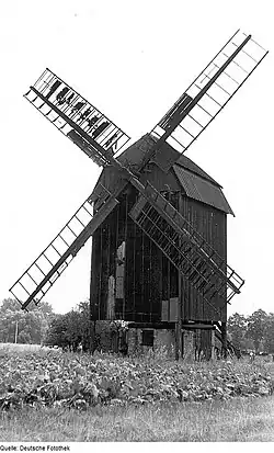 Die hölzerne Bockwindmühle entstand Anfang des 19. Jahrhunderts. 1972 dokumentierte der Mühlenforscher Günter Rapp die Mühle fotografisch. Bereits in den 1970er Jahren war die Mühle nicht mehr windgängig. Das Mühlengebäude war untermauert und nicht mehr drehbar. Nach jahrzehntelangem Verfall stürzte die Ruine spätestens 2015 ein.