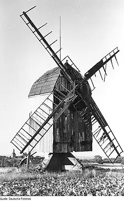 Im Jahr 1808 wurde am jetzigen Mühlenstandort die Breitmeyersche Bockwindmühle errichtet. Zum Teil wird auch die Bezeichnung Breitfeldsche Mühle genutzt. Nach einer Nutzungseinstellung im 20. Jahrhundert verfiel diese Mühle, wurde jedoch Mitte der 1990er Jahre saniert. Während des Orkans Jeanett gerieten die Windmühlenflügel am 28. Oktober 2002 trotz eingesetzter Bremse in Drehung. Durch die dadurch entstandene Hitze entzündete sich ein Feuer, dem die Mühle fast vollständig zum Opfer fiel. Lediglich der Schrick blieb erhalten.