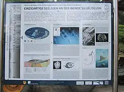 1938 fand man bei Untersuchungen Fossilien am Hang. Sie stammen aus der Pridoli-Epoche im Übergang zwischen Silur und Devon. Die Fossilien stammen aus einer Zeit, als das Gebiet Teil des flachen subtropischen Sauerländer Schelfmeers war. Im Gestein sind Fossilien von Scyphocrinoiden („Bojen-Seelilien“ oder auch „Becherlilien“), Brachiopoden, Orthoceren, Trilobiten und Muscheln vorhanden.[2][3]