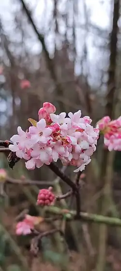 - ↑ Viburnum ×bodnantense im Germplasm Resources Information Network (GRIN), USDA, ARS, National Genetic Resources Program. National Germplasm Resources Laboratory, Beltsville, Maryland.