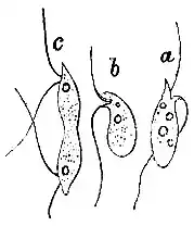 - ↑ a b Christian Gottfried Ehrenberg: Über die Entwicklung und Lebensdauer der Infusionsthiere nebst ferneren Beiträgen zu einer Vergleichung ihrer organischen Systemen. Königliche Akademie der Wissenschaften: Abhandlungen der Königlichen Akademie der Wissenschaften in Berlin, Physikalische Klasse 1831. Berlin, 1832. S. 1–154. In: Isis: encyclopädische Zeitschrift, vorzügl. für Naturgeschichte, vergleichende Anatomie u. Physiologie, 1834; online Siehe insbes. S. 87 [47], und S. 103 [47].