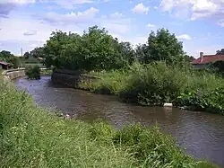 An der Staatsgrenze beträgt der mittlere Durchfluss 5 m³/s, das Wassereinzugsgebiet umfasst 890 km².