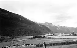 Nach der deutschen Besetzung Norwegens im Zweiten Weltkrieg betrieb die deutsche Kriegsmarine bis zur Kapitulation im Mai 1945 in der Bogenbucht eine wichtige Marinebasis, mit Docks, Kais und Werkstätten, die sowohl Überwasserschiffen wie auch U-Booten bei ihren Angriffen auf alliierte Geleitzüge im Nordmeer als Stützpunkt diente. Werkstattschiffe wie die Huascaran und das ehemalige Katapultschiff Friesenland und Trossschiffe wie die Nordmark waren in der Bogenbucht stationiert. Zum Schutz gegen Fliegerangriffe waren u. a. vier Batterien der Marine-Flakabteilung 710 mit jeweils vier Flak 88/36 an der Bucht stationiert, ebenso Nebelträgergruppen zu Land und zu Wasser zum Einnebeln bei feindlichen Angriffen. Als Schutz gegen Torpedos, Kampfschwimmer und Kleinst-U-Boote wurden Netzkästen für die größeren Schiffe bereitgehalten, die zur Reparatur oder Wartung in der Bogenbucht lagen – unter ihnen die Schlachtschiffe Scharnhorst und Tirpitz[2] und die Schweren Kreuzer Lützow und Admiral Hipper.