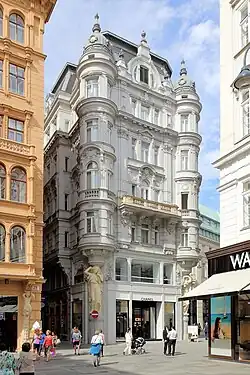 Das dreiseitig freistehende späthistoristische Wohnhaus zwischen Naglergasse und Bognergasse wurde 1901 nach Plänen von Christian Ulrich erbaut. Ins Auge fallen vor allem zwei viergeschoßige, überkuppelte Runderker mit monumentalen Karyatiden an den Gebäudeecken. Das Haus liegt an der Hauptadresse Tuchlauben 1. Es steht unter Denkmalschutz.