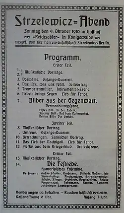 Programm eines Strzelewicz-Abends von 1910.