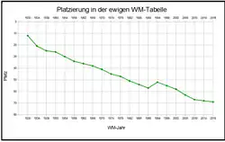 - Teilnahme ohne Qualifikation: zweimal (9 %; 1930, 1950)