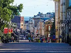Als an der Wende zum 19. Jahrhundert an der Straße erstmals Steinhäuser erbaut wurden, wurde sie zur Hauptstraße der Stadt.[2] Hier befanden sich die Wohnsitze von Generälen, fürstlichen Familien, dem Governor, seinem Stellvertreter und weiteren hohen Beamten.[3] Im Jahre 1896 wurde das Nikolaus-Theater gebaut, dessen Eröffnung zeitlich auf den Beginn der Allrussischen Industrie- und Handwerksausstellung fiel. Am 18. Juli 1896 wurde es von Zar Nikolaus II. besucht.[4] Mit stark zunehmender Baudichte am Anfang des 20. Jahrhunderts wurden schließlich beide Straßenseiten durchgehend bebaut. 1913 wurde die Hauptbank auf der Straße errichtet und zum 300-jährigen Jubiläum der Romanow-Dynastie eröffnet.