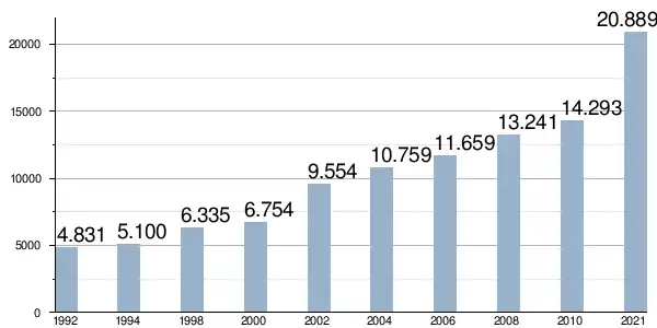 | Schätzung | 20.889 (zuletzt: 1. Juli 2021) | ||