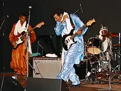 In vieler Hinsicht ähnlich, aber insgesamt deutlich rockiger, sind das Gitarrenspiel und die Musik des fünf Jahre jüngeren Mdou Moctar.